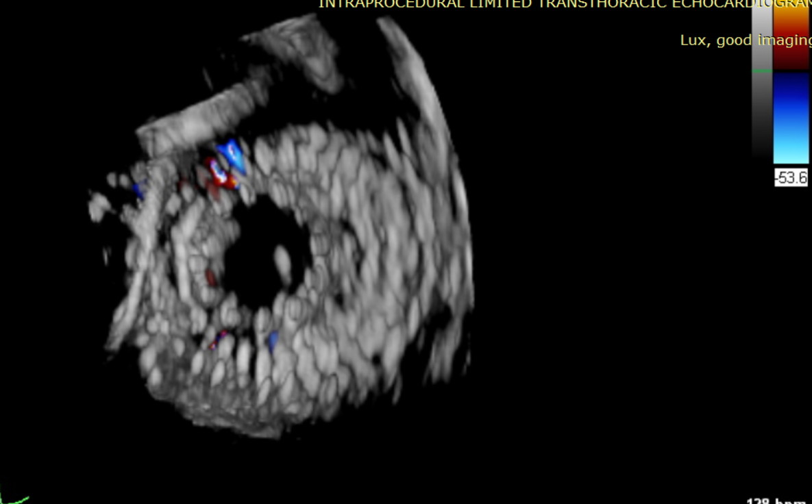術(shù)后Azeem Latib教授對LuX-Valve Plus經(jīng)血管三尖瓣置換系統(tǒng)的器械性能和治療效果大為稱贊,并且認(rèn)為LuX-Valve Plus的手術(shù)體驗(yàn)非常好。從治療效果來看,術(shù)后即刻超聲顯示三尖瓣反流幾乎完全消失,血流動力學(xué)改善顯著,患者恢復(fù)快。在面對復(fù)雜解剖結(jié)構(gòu)、超聲影像質(zhì)量不佳、有起搏導(dǎo)線干擾時(shí),Lux-Valve Plus也體現(xiàn)了極強(qiáng)的適應(yīng)性。Thomas Modine教授參與了術(shù)中指導(dǎo),他同樣再次肯定了LuX-Valve Plus術(shù)中操作的便捷性,認(rèn)為LuX-Valve Plus容錯(cuò)率高,對術(shù)中影像的依賴小,并表達(dá)了后期希望可以更多地應(yīng)用LuX-Valve Plus三尖瓣置換系統(tǒng)于臨床實(shí)踐,讓更多的三尖瓣重度反流患者盡早獲益,改善預(yù)后。