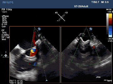 術后TEE影像示封堵完全