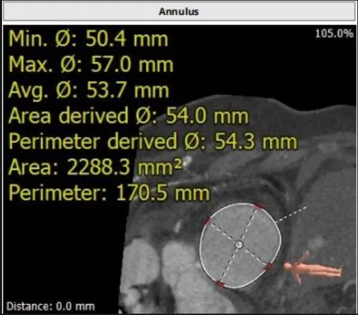 三尖瓣環(huán)平均周長徑54.3mm,最大直徑57mm