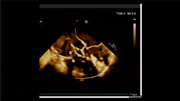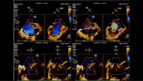 術(shù)中經(jīng)食道超聲輔助下可見LuX-Valve Plus夾持件抓捕瓣葉狀態(tài)良好,夾持件在位,室間隔錨定位置良好,假體瓣膜整體錨定狀態(tài)穩(wěn)固。