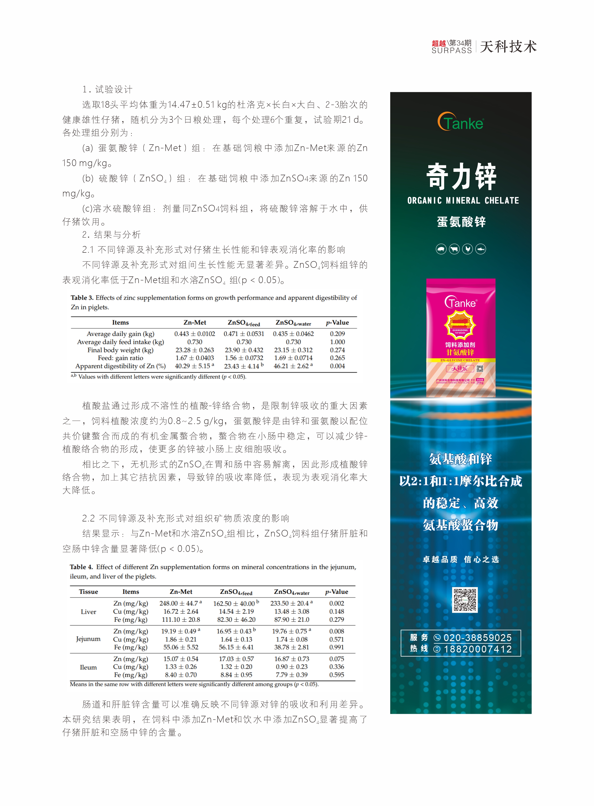 氨基酸和鋅以2:1和1:1摩爾比合成的穩(wěn)定、高效氨基酸螯合物