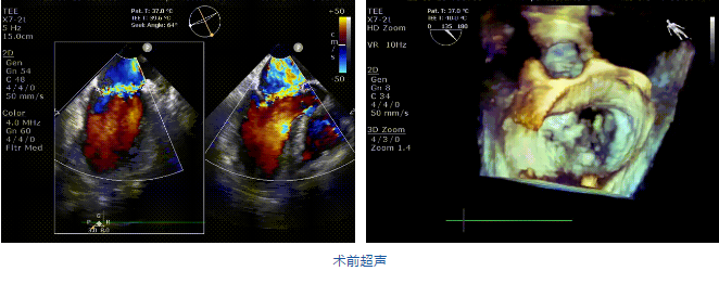 在阜外醫(yī)院潘湘斌教授團隊的支持下,手術(shù)經(jīng)股靜脈-房間隔入路,采用全身麻醉插管,在TEE和DSA引導(dǎo)下完成房間隔穿刺。置入JensClip瓣膜夾系統(tǒng)后,在左房調(diào)整瓣膜夾的位置和軸向,后進入左室,在TEE引導(dǎo)下捕捉二尖瓣前后瓣葉,并關(guān)閉瓣膜夾。經(jīng)TEE反復(fù)確認(rèn)手術(shù)效果后最終鎖定并釋放瓣膜夾。術(shù)后即刻超聲顯示瓣膜夾位置穩(wěn)定,功能良好,二尖瓣反流由術(shù)前4+減少至微量,手術(shù)圓滿成功。