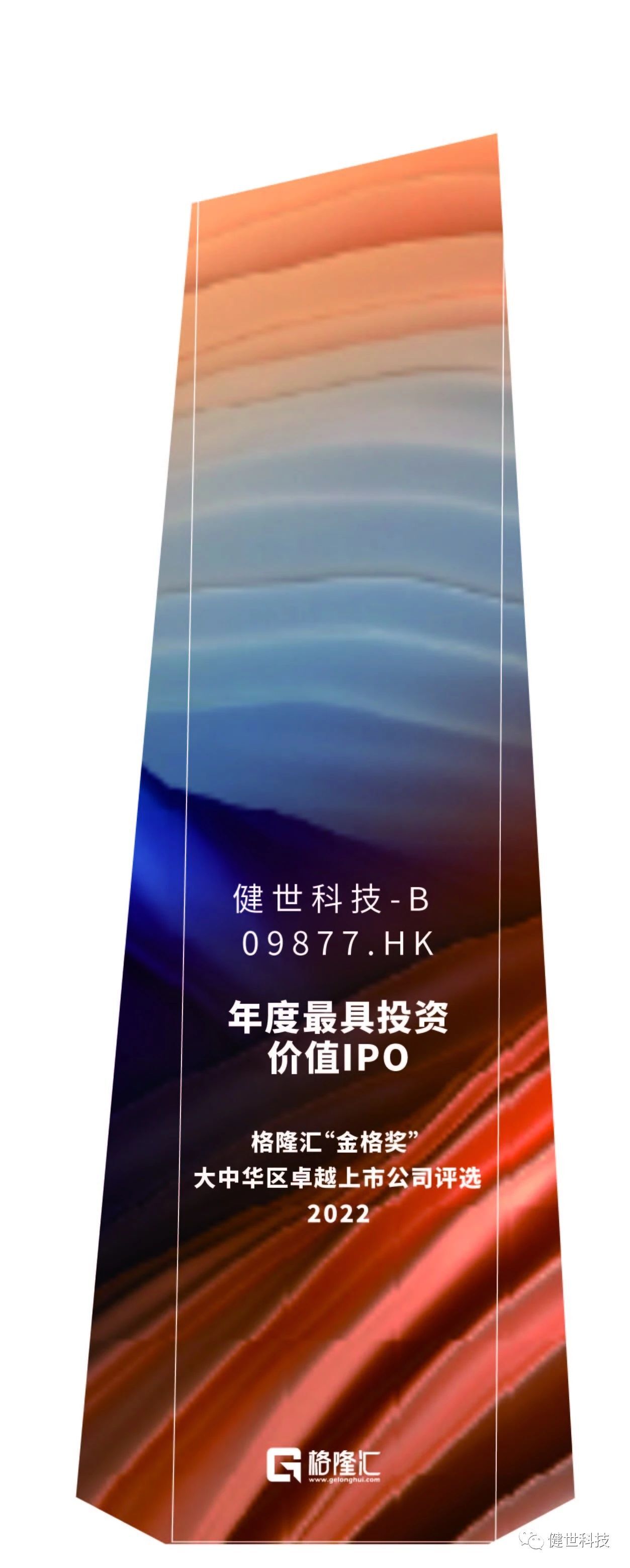 寧波健世科技股份有限公司(“健世科技”)在第七屆“格隆匯全球投資嘉年華2023”的“金格獎(jiǎng)”——大中華區(qū)卓越上市公司評(píng)選中榮獲“年度最具投資價(jià)值IPO”獎(jiǎng)項(xiàng)。