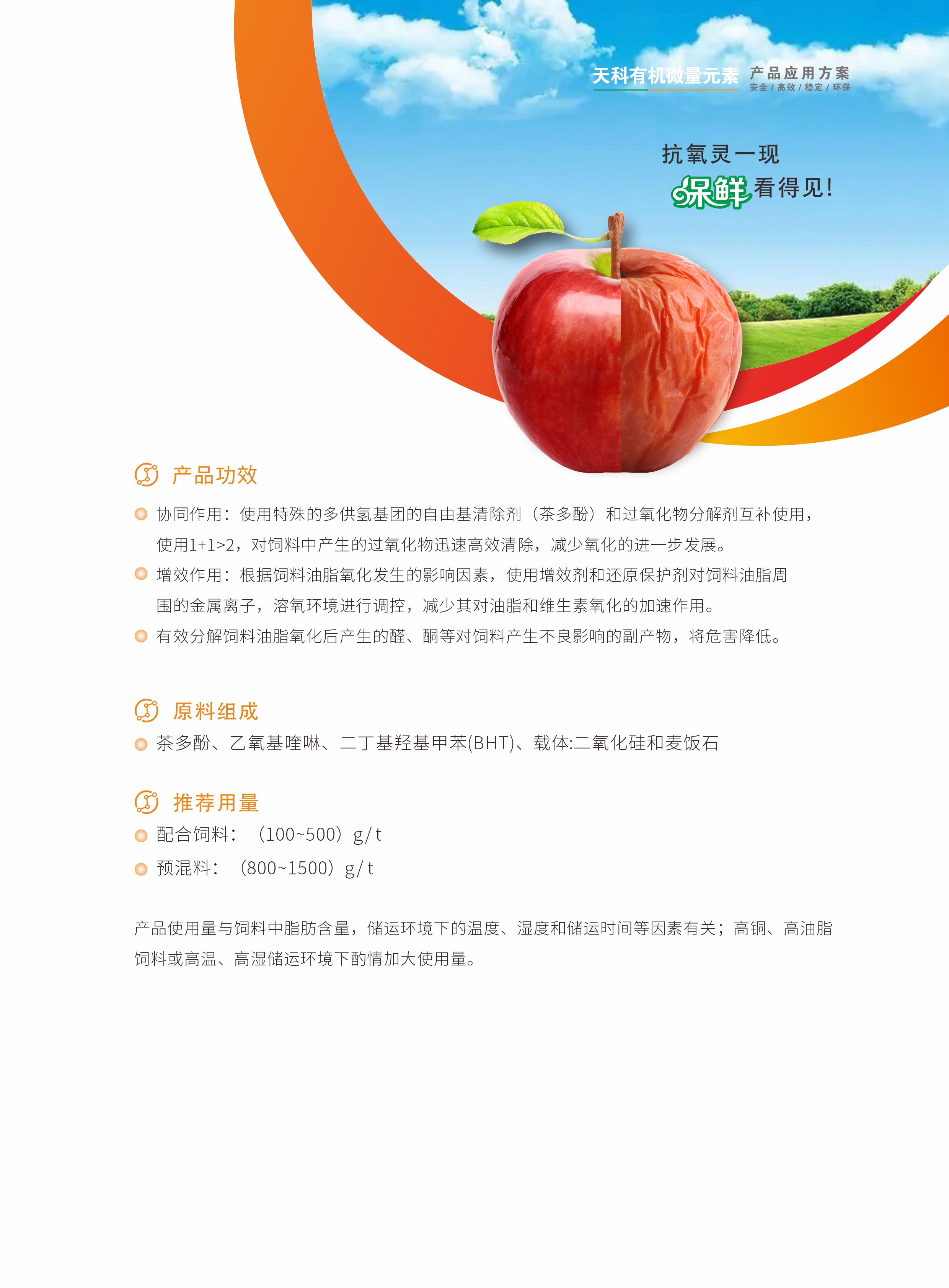 采用專利技術(shù),篩選最合理的抗氧化組合,一種完美的飼料品質(zhì)保護劑。