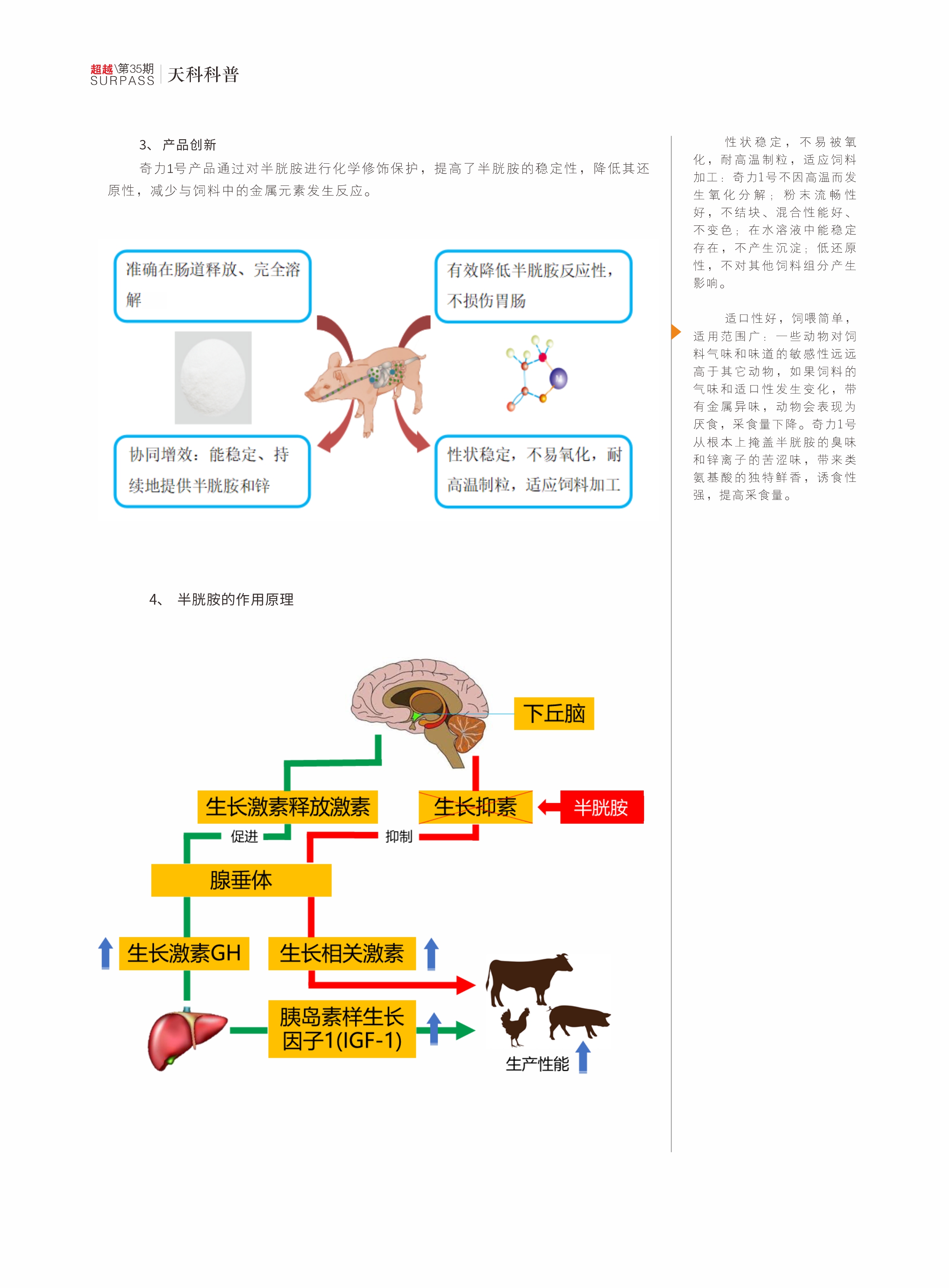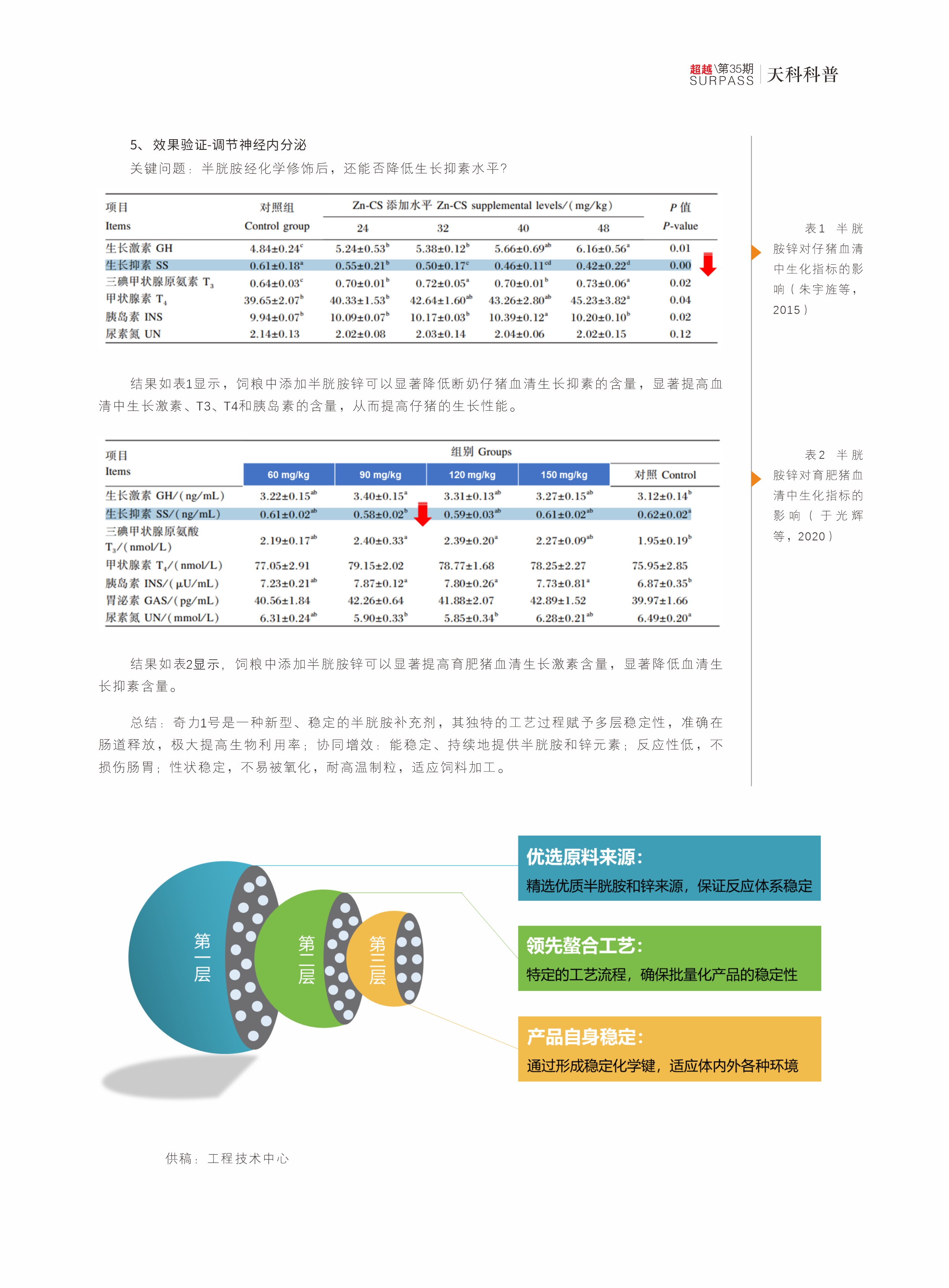 奇力1號是一種新型、穩(wěn)定的半胱胺補(bǔ)充劑,其獨(dú)特的工藝過程賦予多層穩(wěn)定性,準(zhǔn)確在腸道釋放,極大提高生物利用率;協(xié)同增效:能穩(wěn)定、持續(xù)地提供半胱胺和鋅元素;反應(yīng)性低,不損傷腸胃;性狀穩(wěn)定,不易被氧化,耐高溫制粒,適應(yīng)飼料加工。