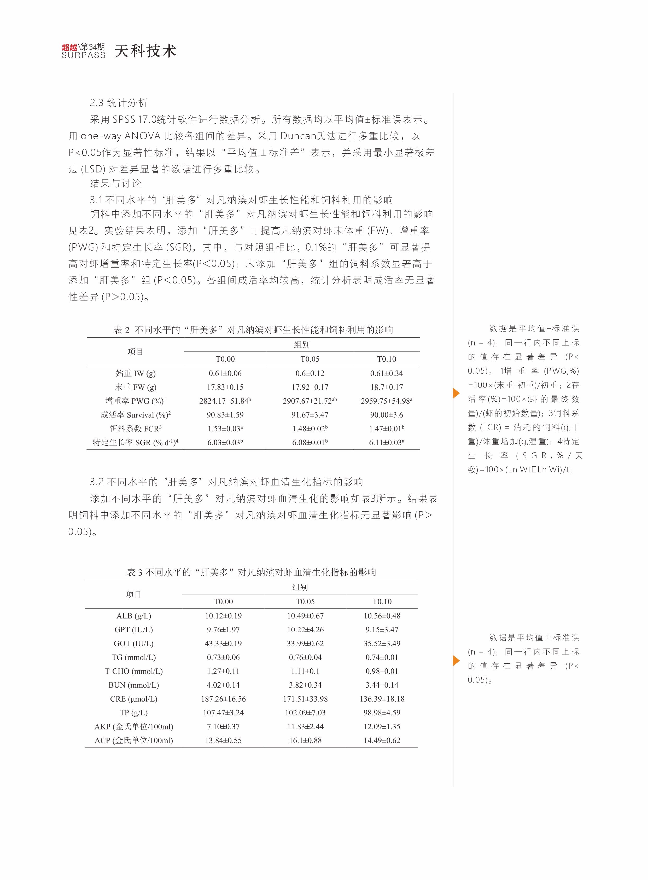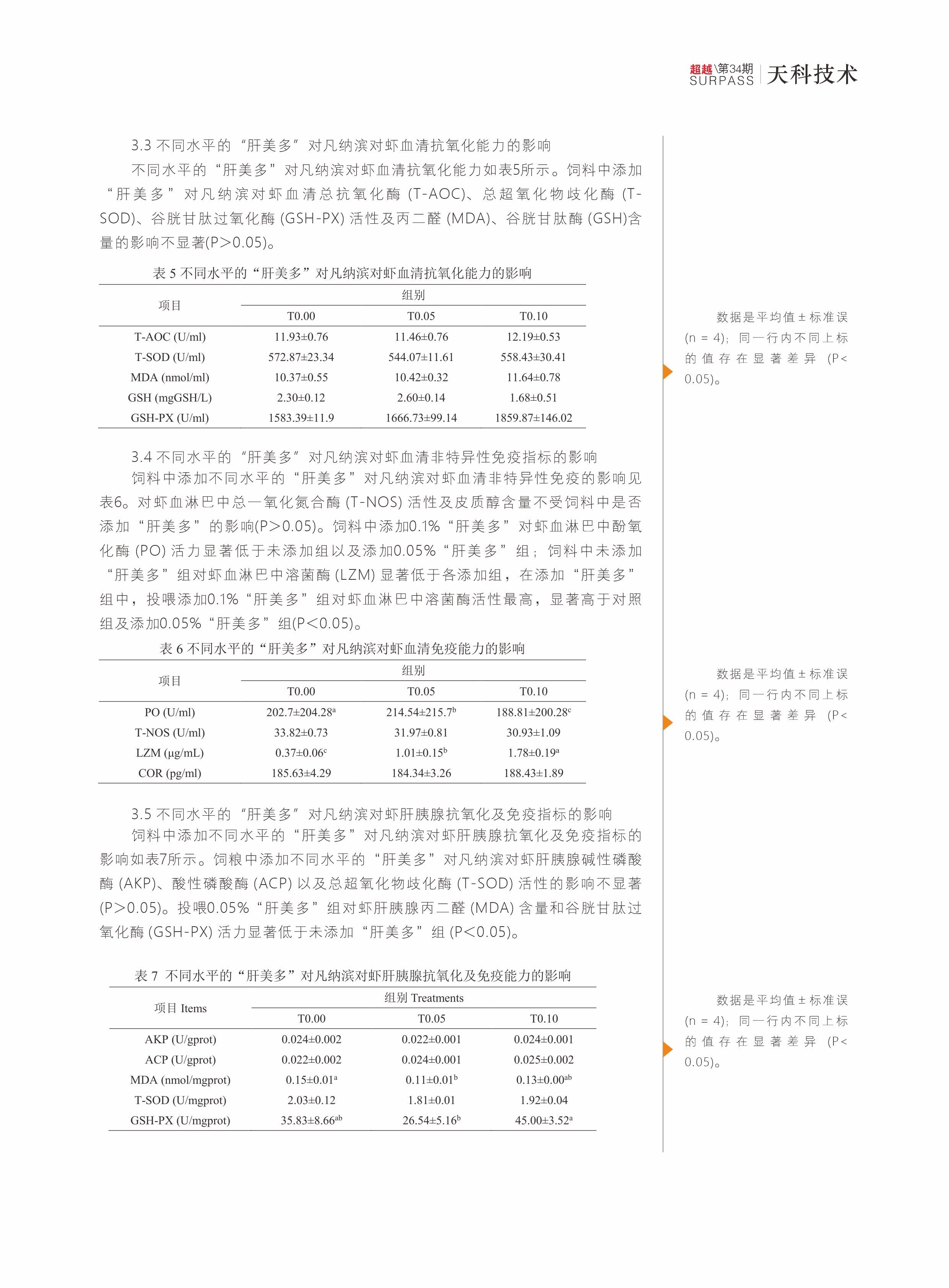 “肝美多”對凡納濱 對蝦生長、血清非特異性免疫及抗氧化 能力的影響